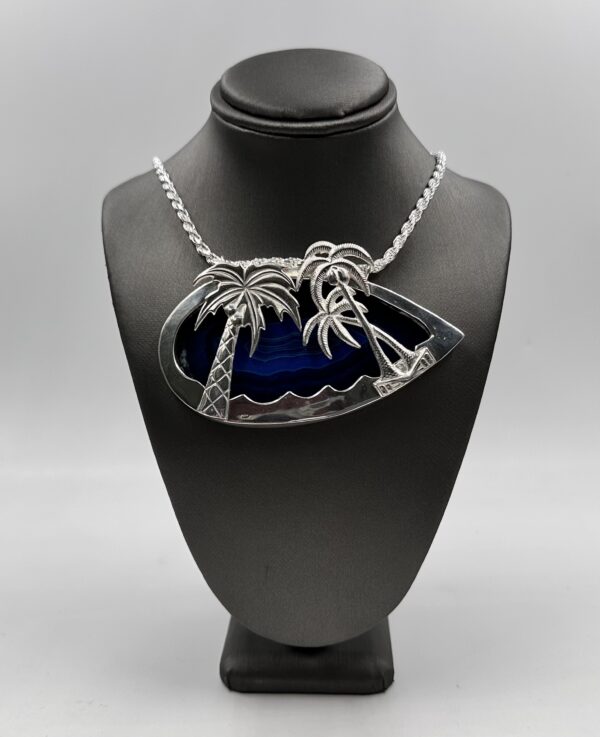 Haley & Loyd Original Hand-Made Sterling Silver & Blue Agate Oasis Pendant With 20-Inch Rope Chain