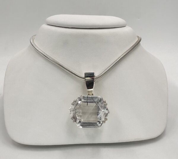 Tourmalinated Quartz set in Sterling Silver frame w/ 18in Round Snake Chain