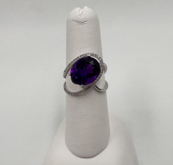 Ladies Oval Amethyst 14k White Gold Ring with .19ctw Accent Diamonds